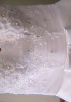 Регулируется шнуровкой, может подойти и на 42 размер. Не венчанное, надевалось 1 раз, после химчистки и в отличном состоянии. К нему отдам кольца для юбки и укороченные перчатки. Также продам хорошенькие туфельки 38 размера за 1000 руб.! Примерка на Кесаева А. (ост. Юмашева)