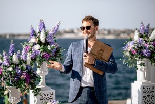 Яркий и колоритный ведущий, способный легко увлечь публику и сделать Ваше мероприятие незабываемым! Валентин, как настоящий виртуоз и мастер конферансье создаст для Вас идеальное торжество! Знакомьтесь с одним из лучших ведущих в Крыму и превратите свою мечту о свадебном торжестве в реальность!